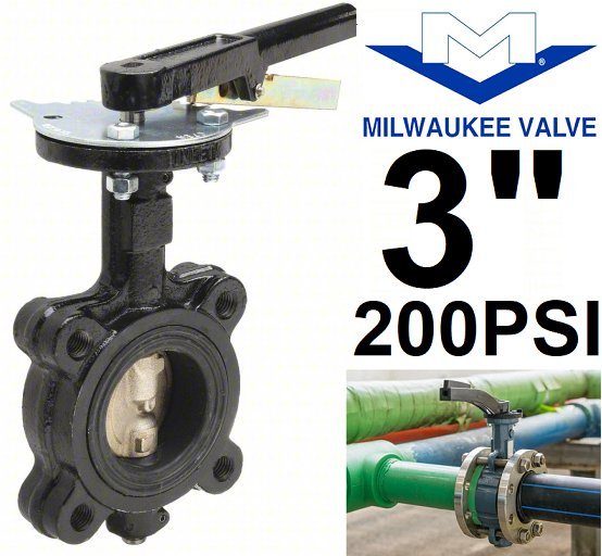 🔧 Milwaukee Valve Butterfly Valve – 3” Pipe, 200 PSI, FKM Seal (Model: ML234V)