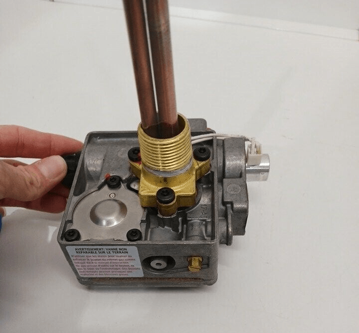 Manufactured by SIT Controls, this “T/S” (Thermostat/Safety) valve integrates the temperature sensing probe and the gas safety shut-off into a single, reliable unit.