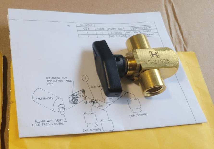 Hendrickson Manual 3-Way Ball Valve for Air Suspension – Cross Reference VS22535, VS28048, AK1471
