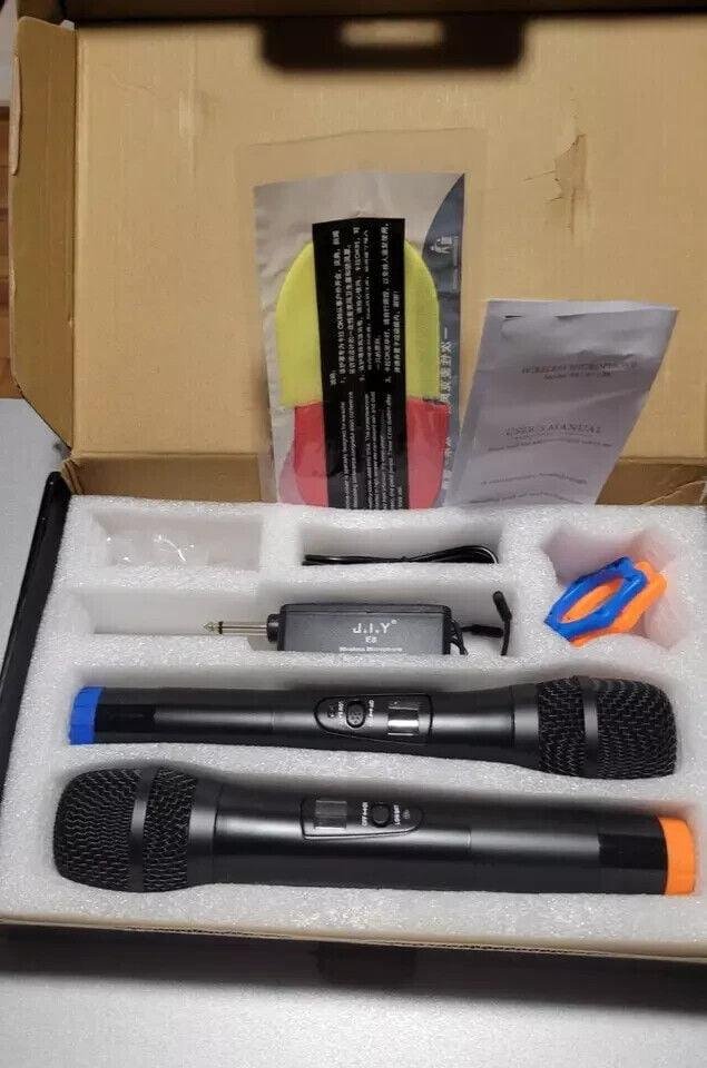 Wireless Microphone UHF Dual Handheld Mic System Karaoke Rechargeable Receiver