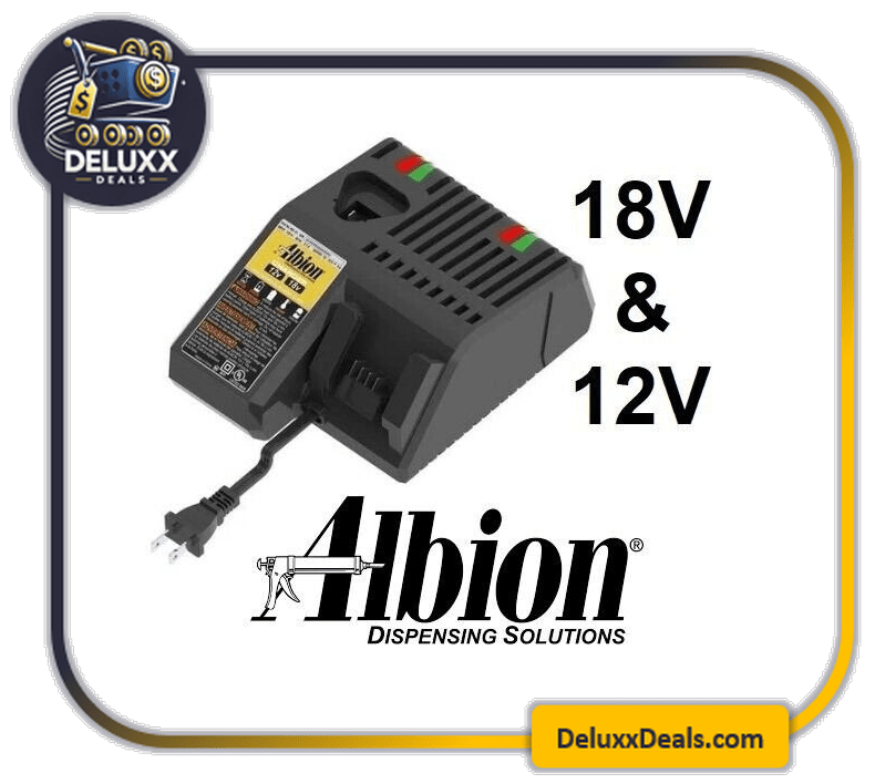 Keep your professional cordless dispensing tools powered up with the Albion Engineering Battery Charger. Designed for high-speed efficiency, this charger is a vital component for contractors using Albion’s 12V or 18V cordless caulk and adhesive guns. It minimizes downtime on the job site by delivering a full charge to your batteries in an hour or less.