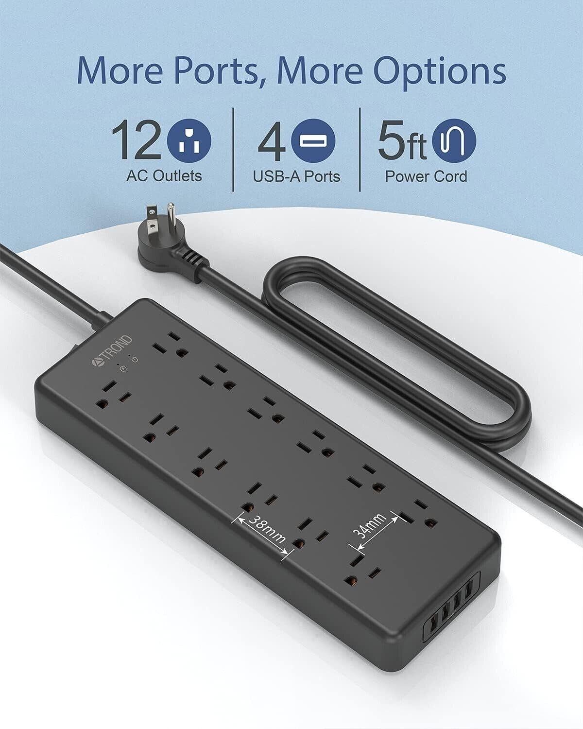 | Safeguard your high-value electronics, gaming consoles, and critical home office gear with the robust **TROND 4000J Surge Protector Power Bar USB – 12 Outlets**. Delivering an exceptionally high 2000 Joules of protection, this power bar is ideal for homeowners and small businesses who cannot afford downtime or damage from severe power spikes, surges, or nearby lightning strikes. The 2000 Joules rating is what truly sets this unit apart from common 1000J-2000J power strips. This high capacity provides greater resilience, making it suitable for areas prone to frequent power fluctuations or for protecting systems drawing high current (like high-end PCs or laser printers). **Critical Safety Features:** The unit is constructed from top-grade flame-retardant PC & ABS material, a non-negotiable feature for continuous-use electronics. It includes full multi-layered protection against short circuits, overloads, and over-currents. **Unique Status Indicator:** A key functional advantage is the dedicated LED indicator light. While the power bar will continue to function after the sacrificial surge protection components have expired, the green light alerts you immediately when protection has been exhausted, ensuring you never rely on a defunct surge guard. The 5-foot 14AWG power cord ensures maximum power delivery efficiency and minimizes resistance, even under full load. Get the performance you need without the premium price tag. This quality-checked unit offers the quality and reliability you need at a price that makes sense. We meticulously inspect all equipment before listing to ensure it meets our standards for functionality and condition. Secure this verified-condition unit before stock runs out – order today for fast delivery. |