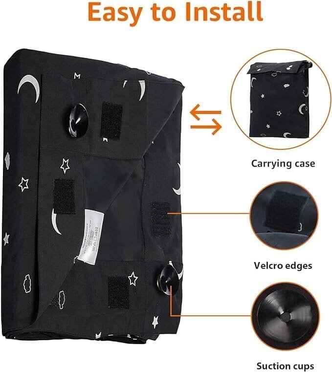 Designed for ultimate convenience, it requires no tools or curtain rods—simply attach it directly to the glass using the integrated suction cups for an instant blackout effect.