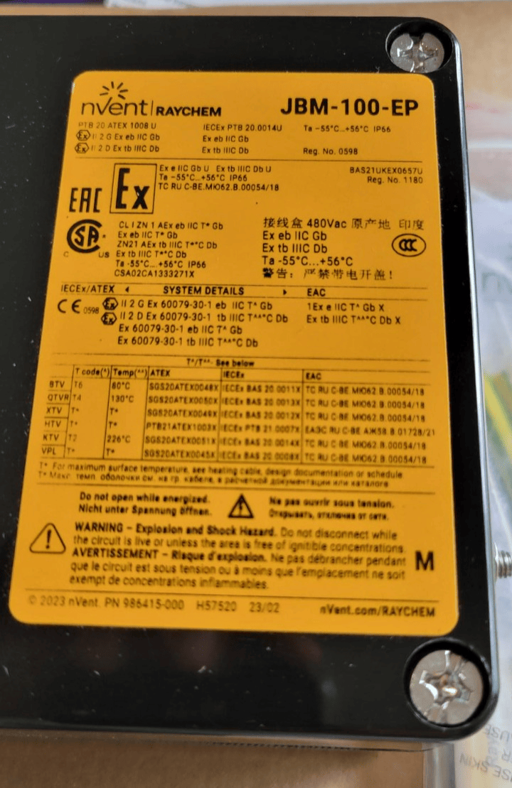 • Universal Compatibility: This single range of junction boxes works across all nVent RAYCHEM self-regulating heating cables, including: BTV, QTVR, XTV, KTV, and VPL.
