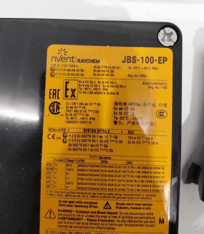 • Universal Compatibility: This junction box is suitable for use with all major nVent RAYCHEM self-regulating parallel heating cables, including BTV, QTVR, XTV, KTV, and VPL.