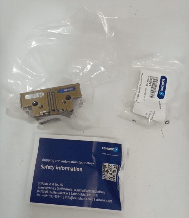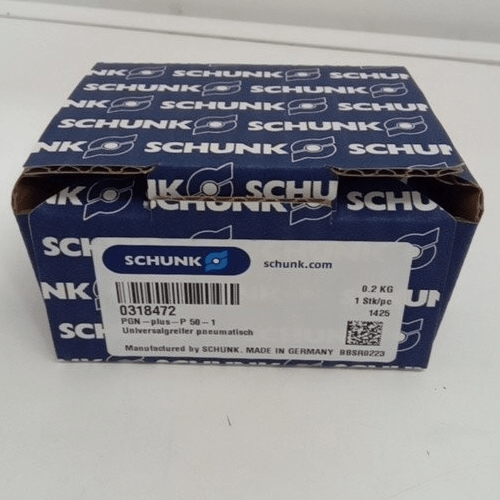 This SCHUNK PGN-plus-P Size 50 Gripper is offered in Open Box condition with the contents sealed, confirming it is a brand new, unused component protected from environmental contaminants prior to installation.6